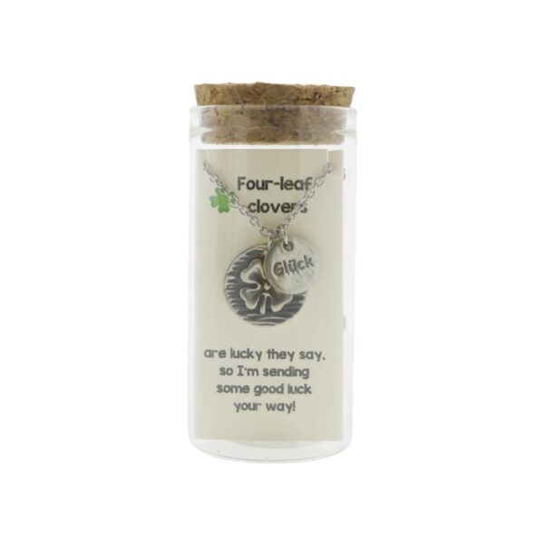 Ketting met hanger klavertje 4 in glazen buisje (3×6.5 cm)