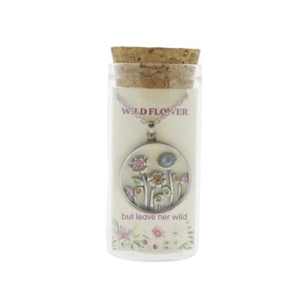 Ketting met hanger bloemen in glazen buisje (3×6.5cm)