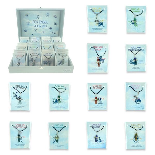 Een engel voor jou – engel edelsteenhangers + edelsteen uitleg – Complete kist 3×12 soorten