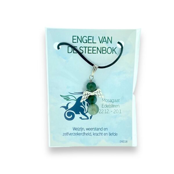 Een engel voor jou – engel edelsteenhangers + edelsteen uitleg – Mosagaat – steenbok