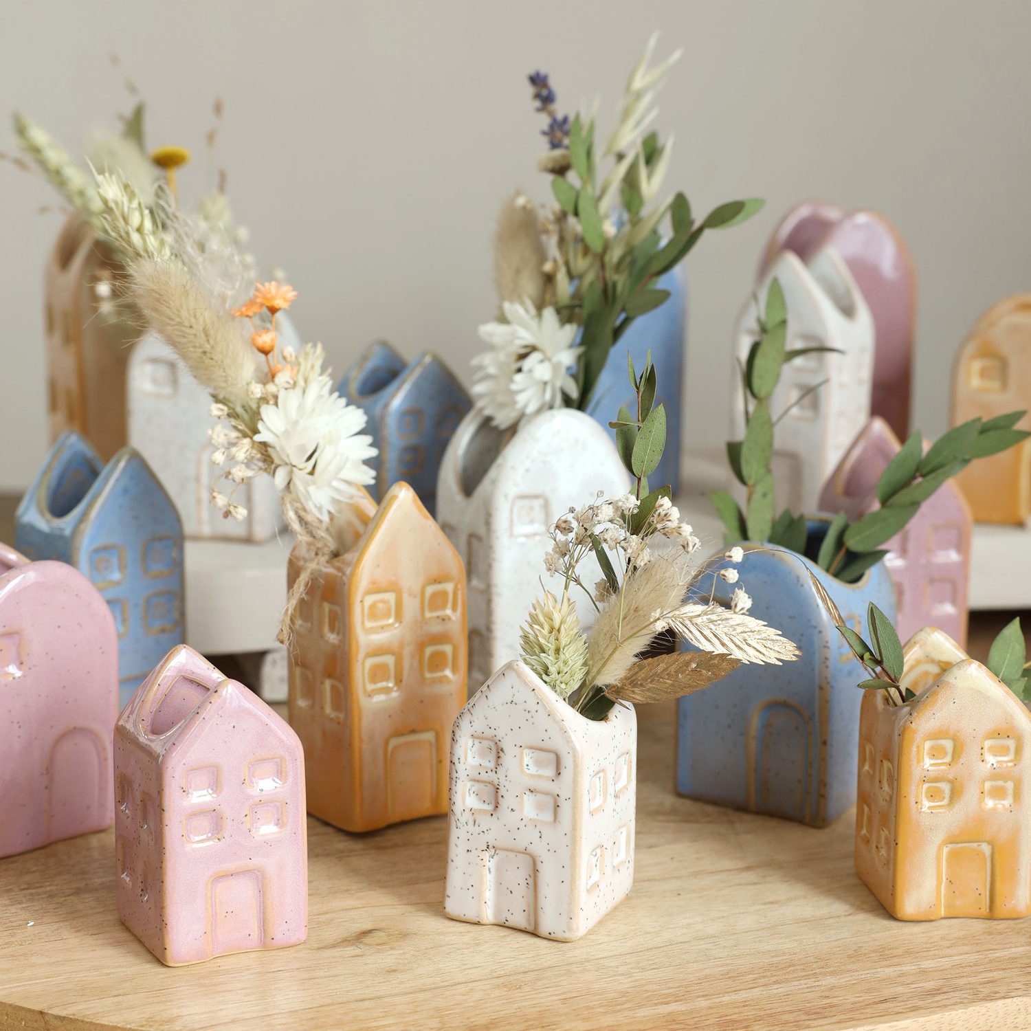 Bloemvaas huisjes Valarta middel 4ass. (4x4x9cm)