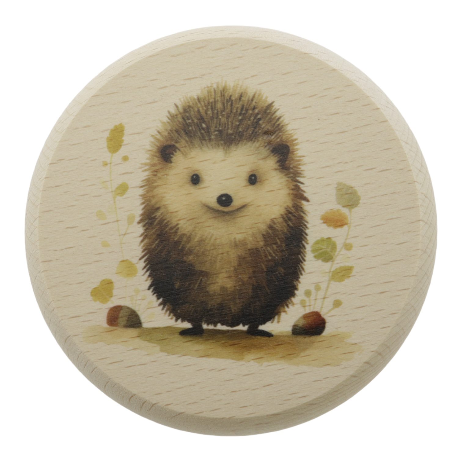 Dierenlijstje Egel beukenhout Ø10cm in cadeauverpakking - Afbeelding 1