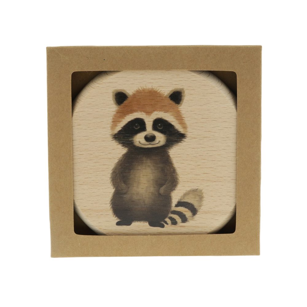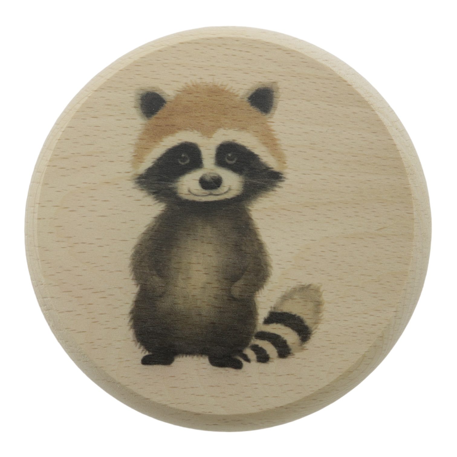 Home Thema's Dieren Dierenlijstje Wasbeer beukenhout Ø10cm in cadeauverpakking