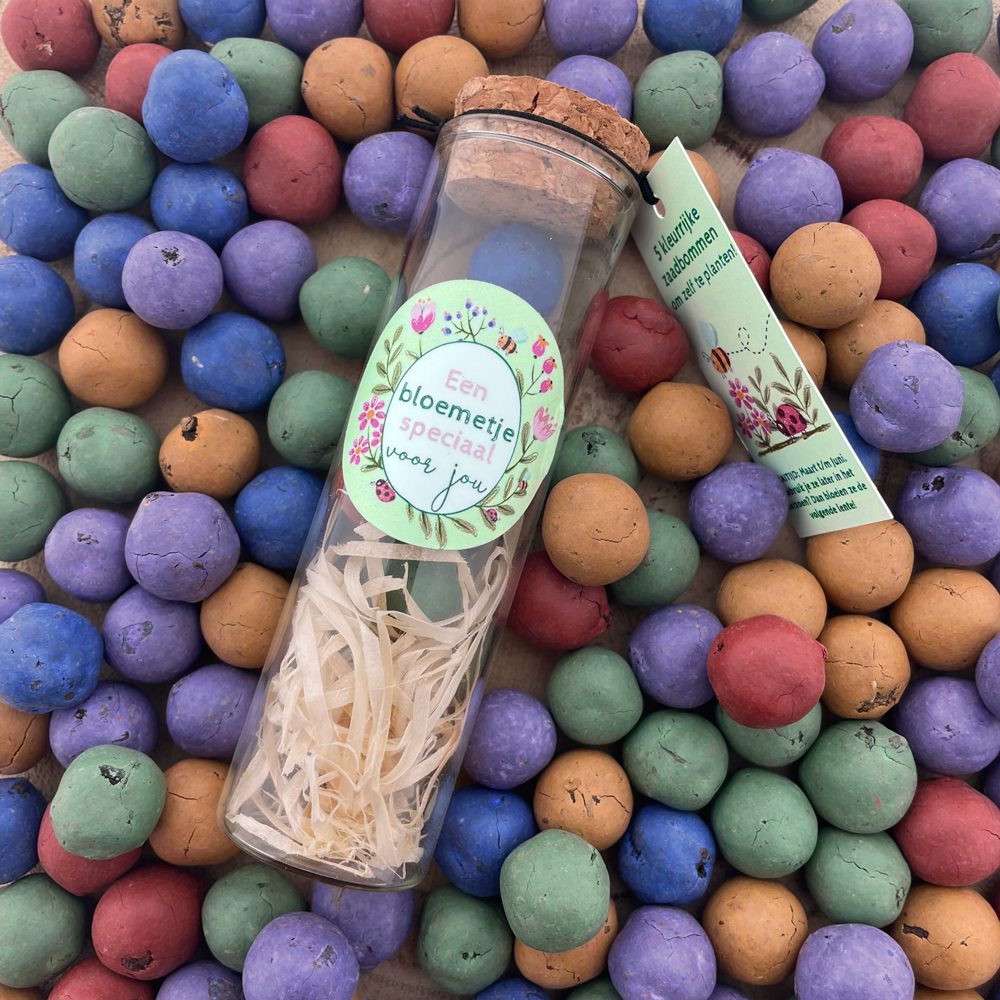 Flesje met 5 zaadbommen om zelf te planten 10x3cm