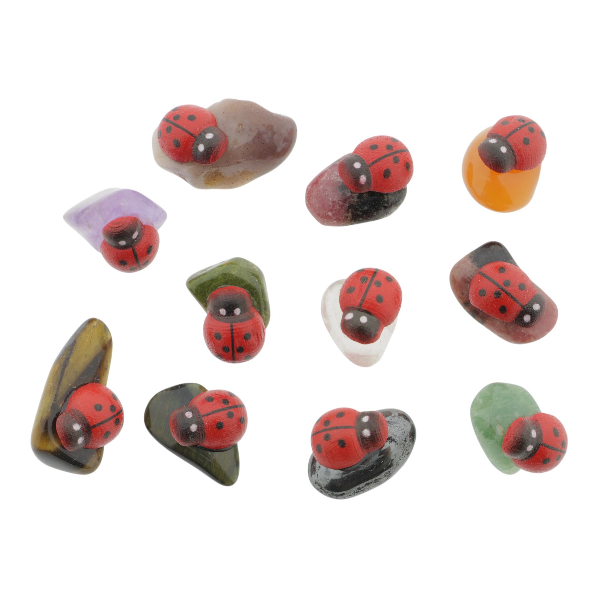 Home Natuurlijke Materialen & Geschenken 🌿 Handgemaakte Symbolische cadeautjes Geluks lieveheersbeestje op edelsteen 1 – 2 cm