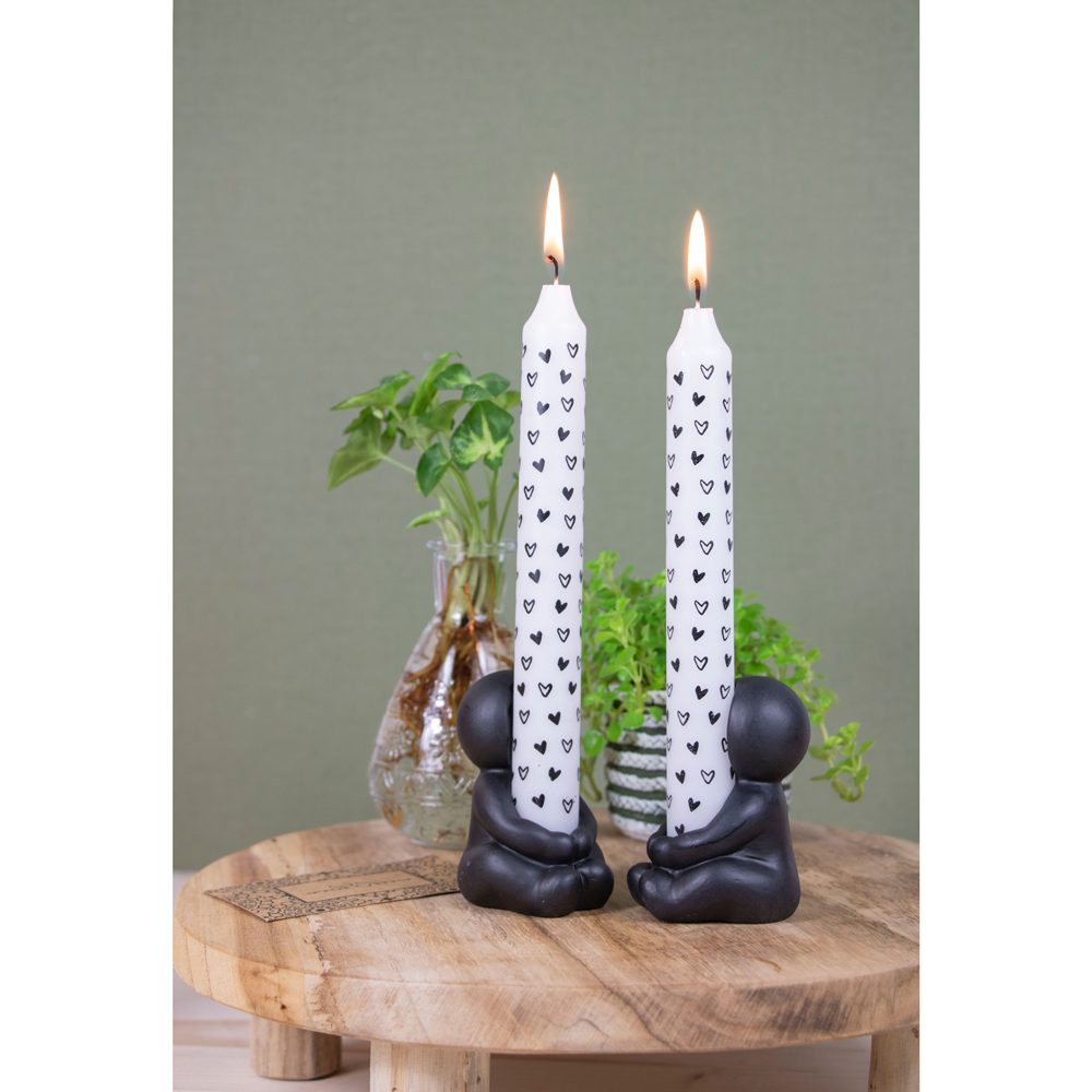 Inc. 2 kaarsenhouders “Hug” en 2 kaarsen “hartjes zwart” (20cm / Ø2,2cm)