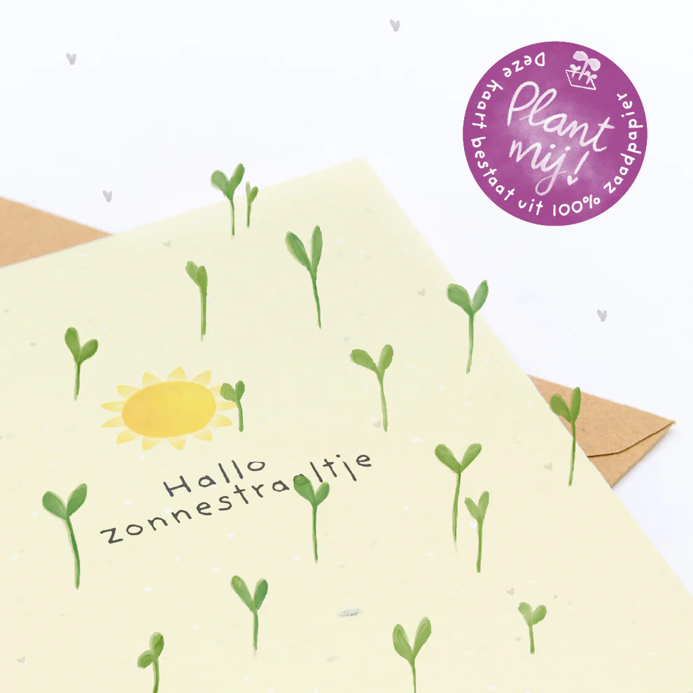 Hallo zonnestraaltje, plantbare wenskaart