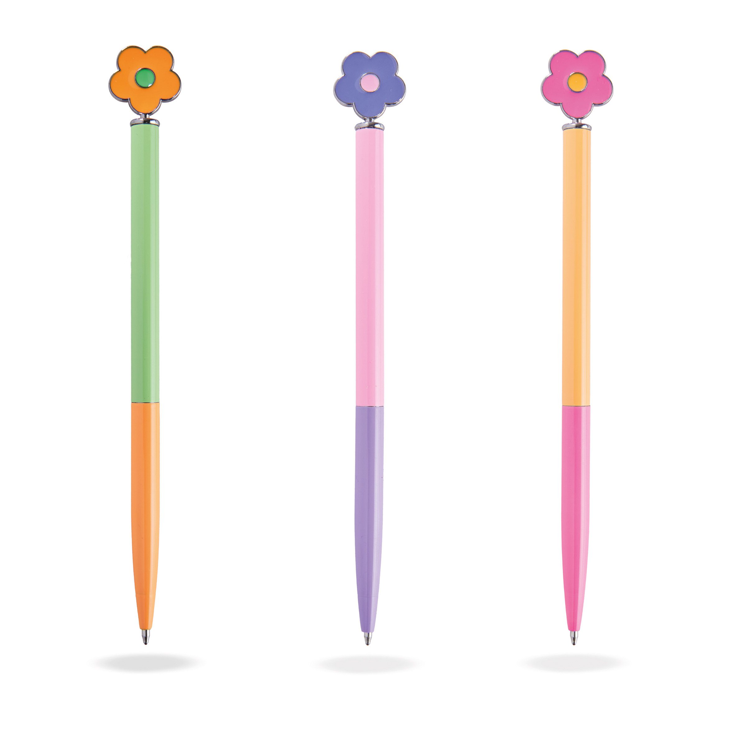Happy Flower – Metaal pen met bloem ass. (2,7×1,3×16,3cm)