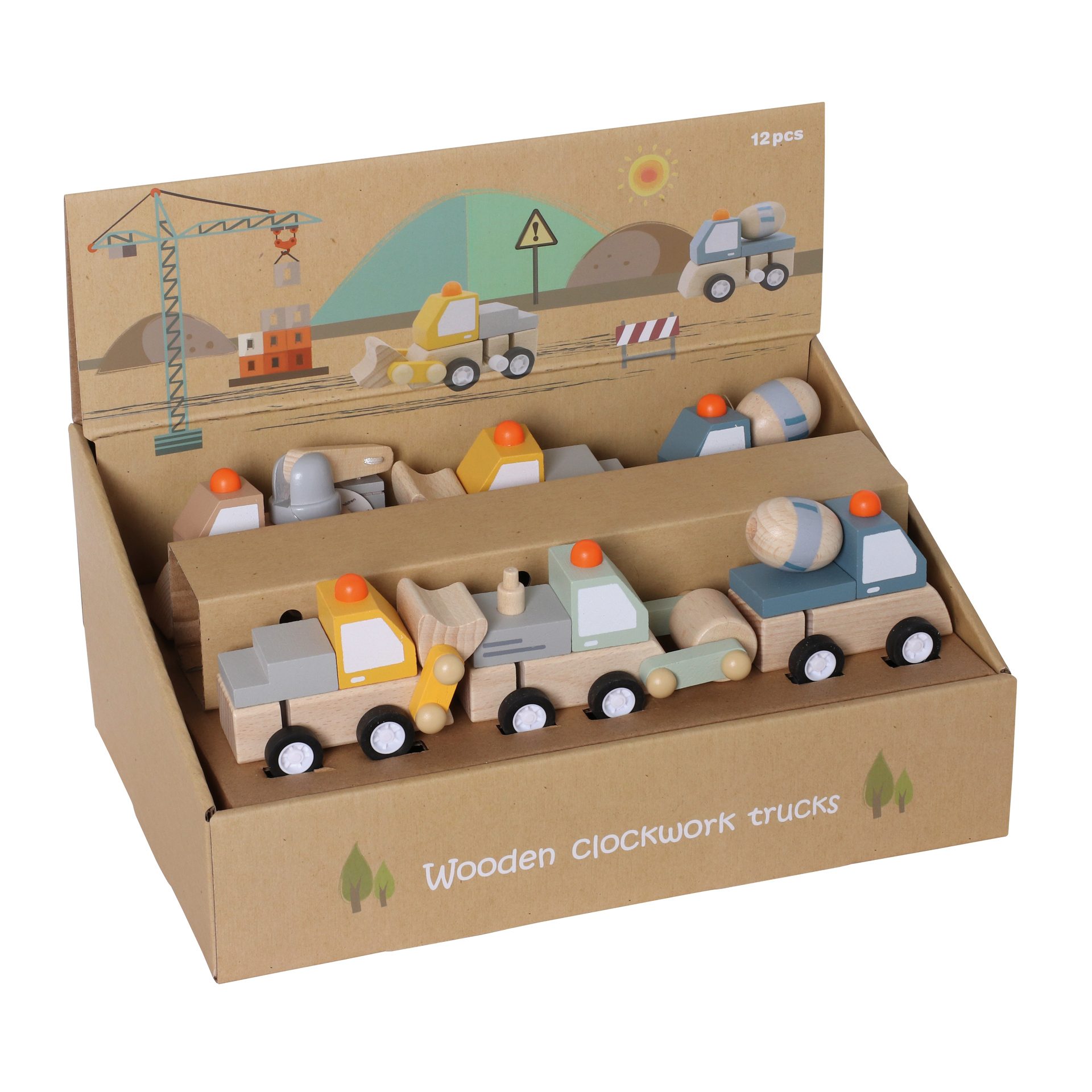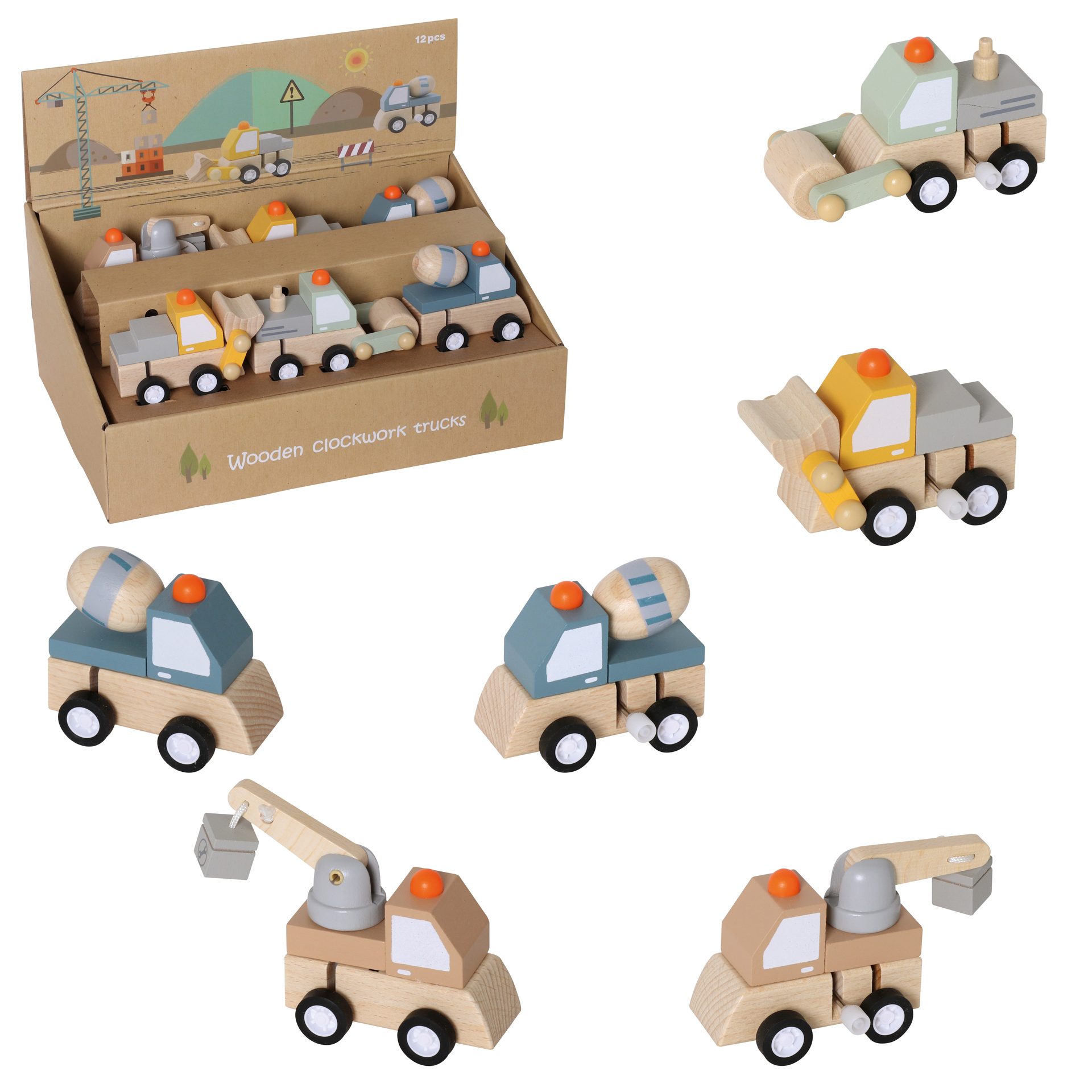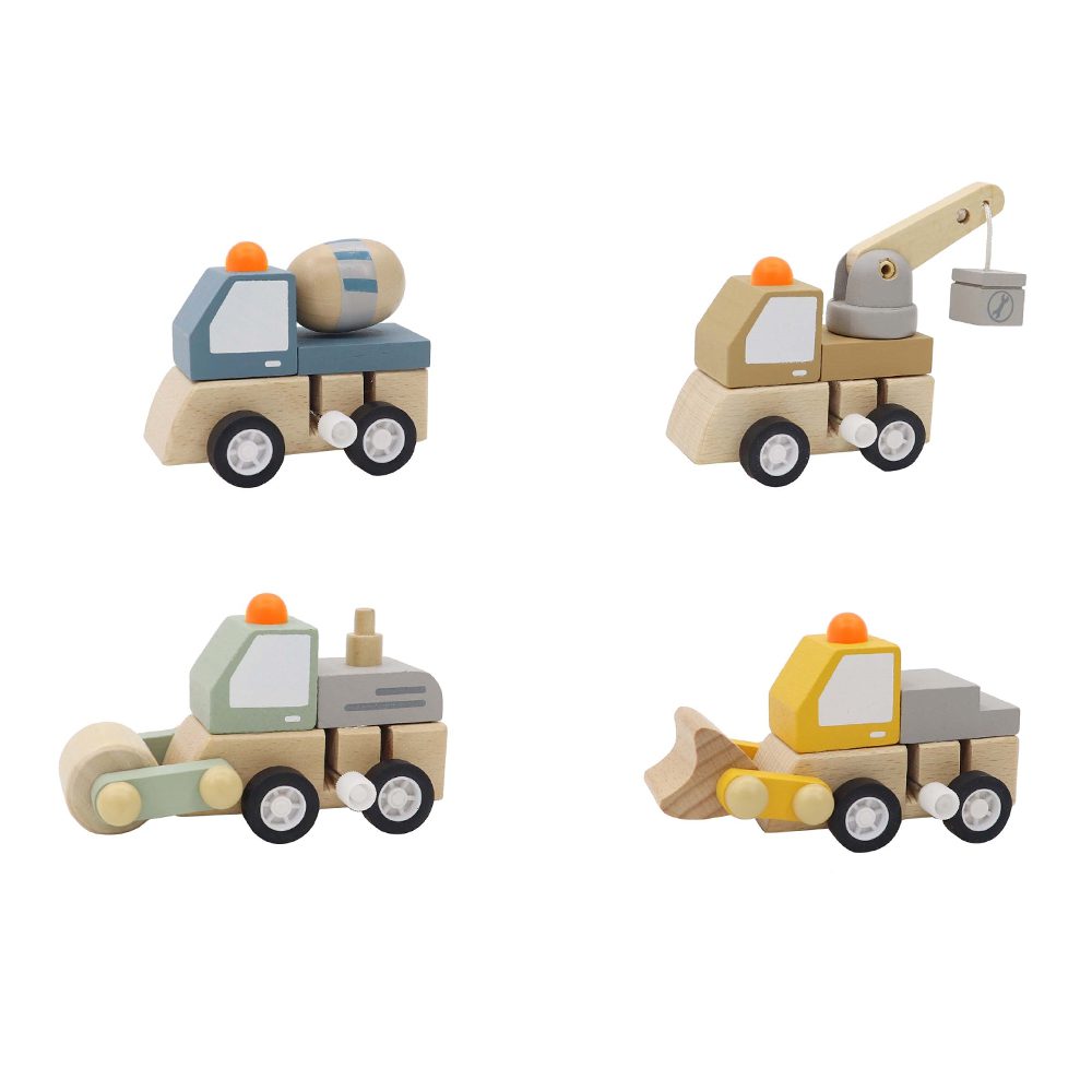 Houten opwind bouwvoertuigen (ass.)
