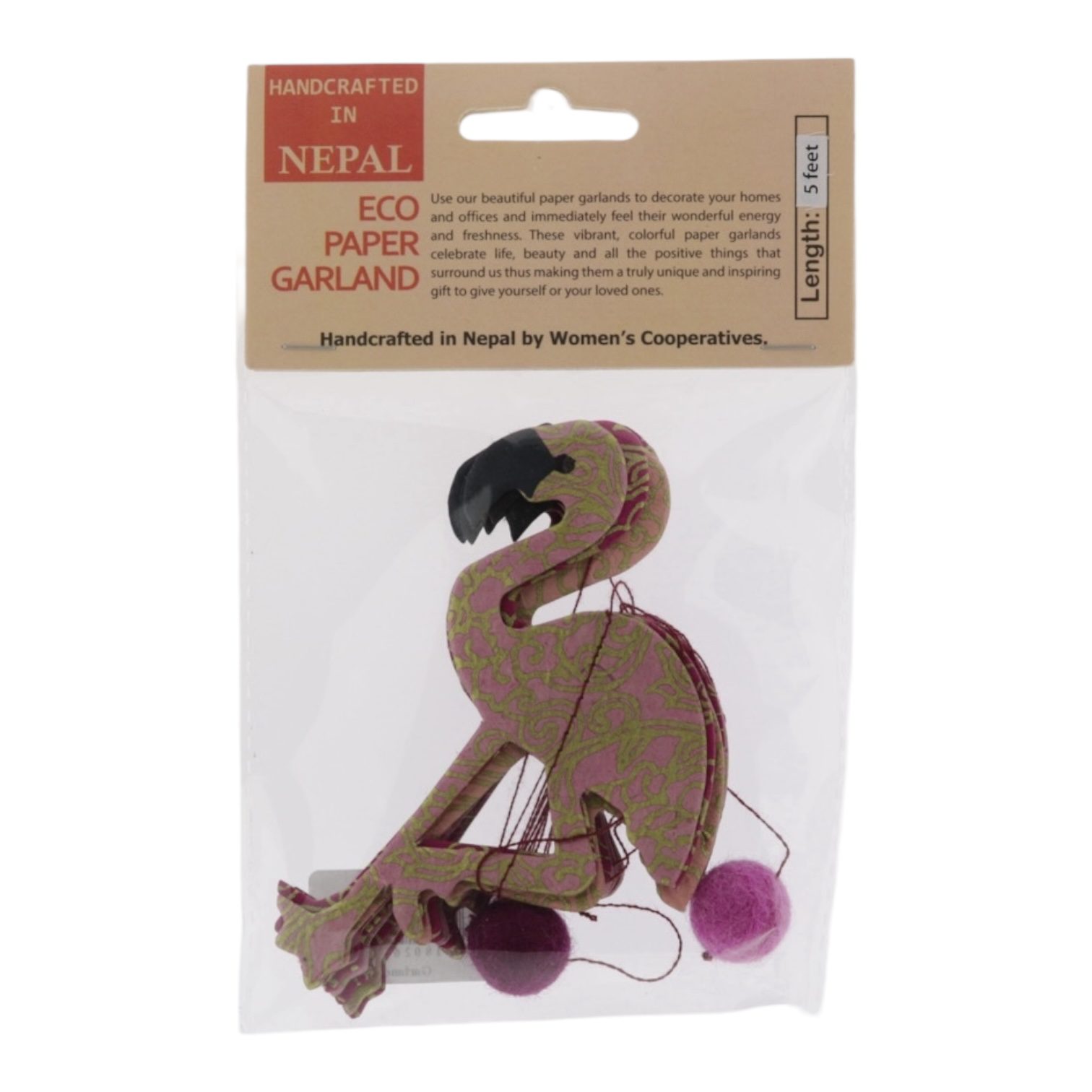 Lokta-papier met verschillende patronen wordt zorgvuldig uitgestanst en met de hand aan elkaar gestikt tot prachtige slingers. Deze slingers zijn fairtrade producten, gemaakt door vrouwencoöperaties met behulp van lokale grondstoffen en restpapier. Hierdoor is elke slinger uniek en bijzonder.