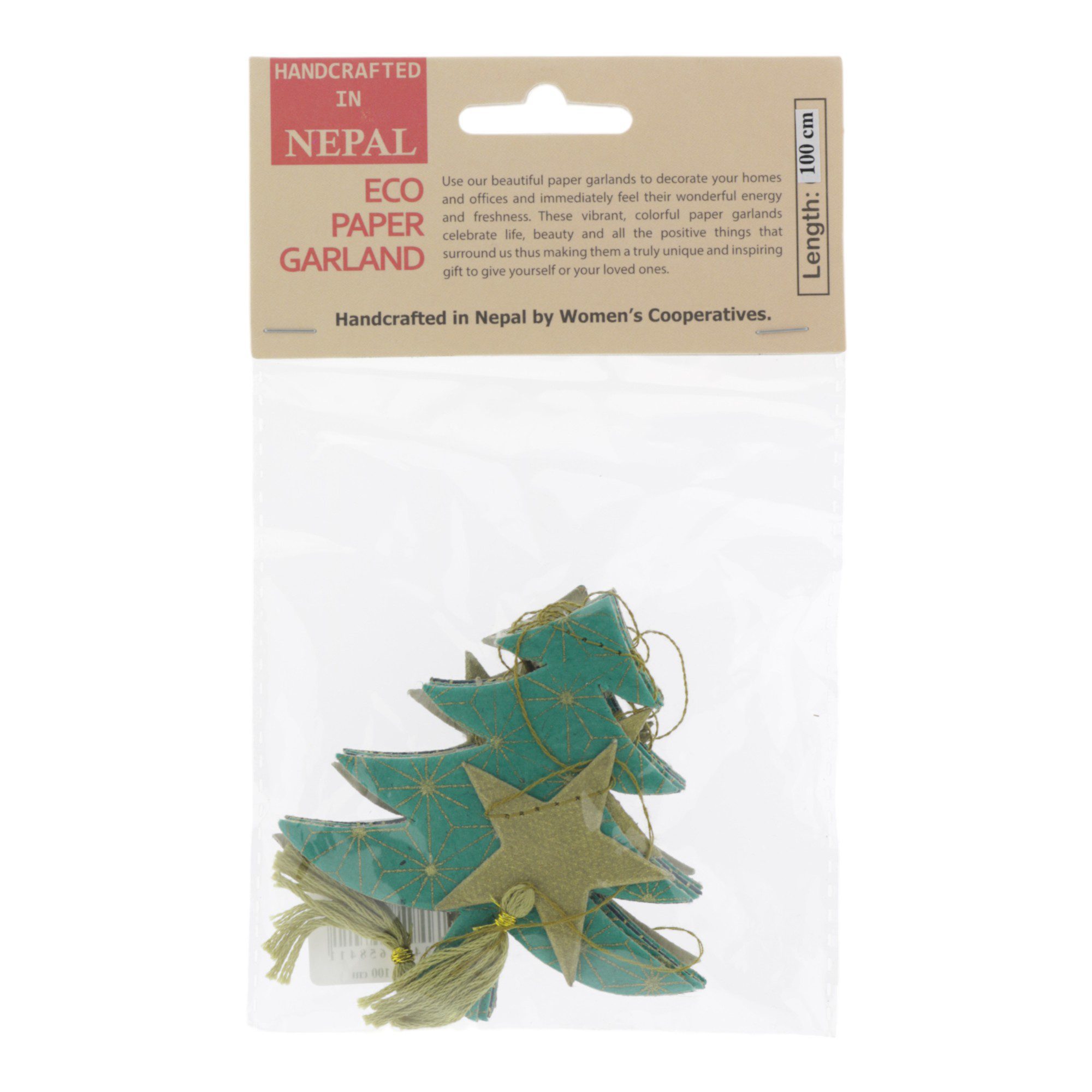 Lokta-papier met verschillende patronen wordt zorgvuldig uitgestanst en met de hand aan elkaar gestikt tot prachtige slingers. Deze slingers zijn fairtrade producten, gemaakt door vrouwencoöperaties met behulp van lokale grondstoffen en restpapier. Hierdoor is elke slinger uniek en bijzonder.