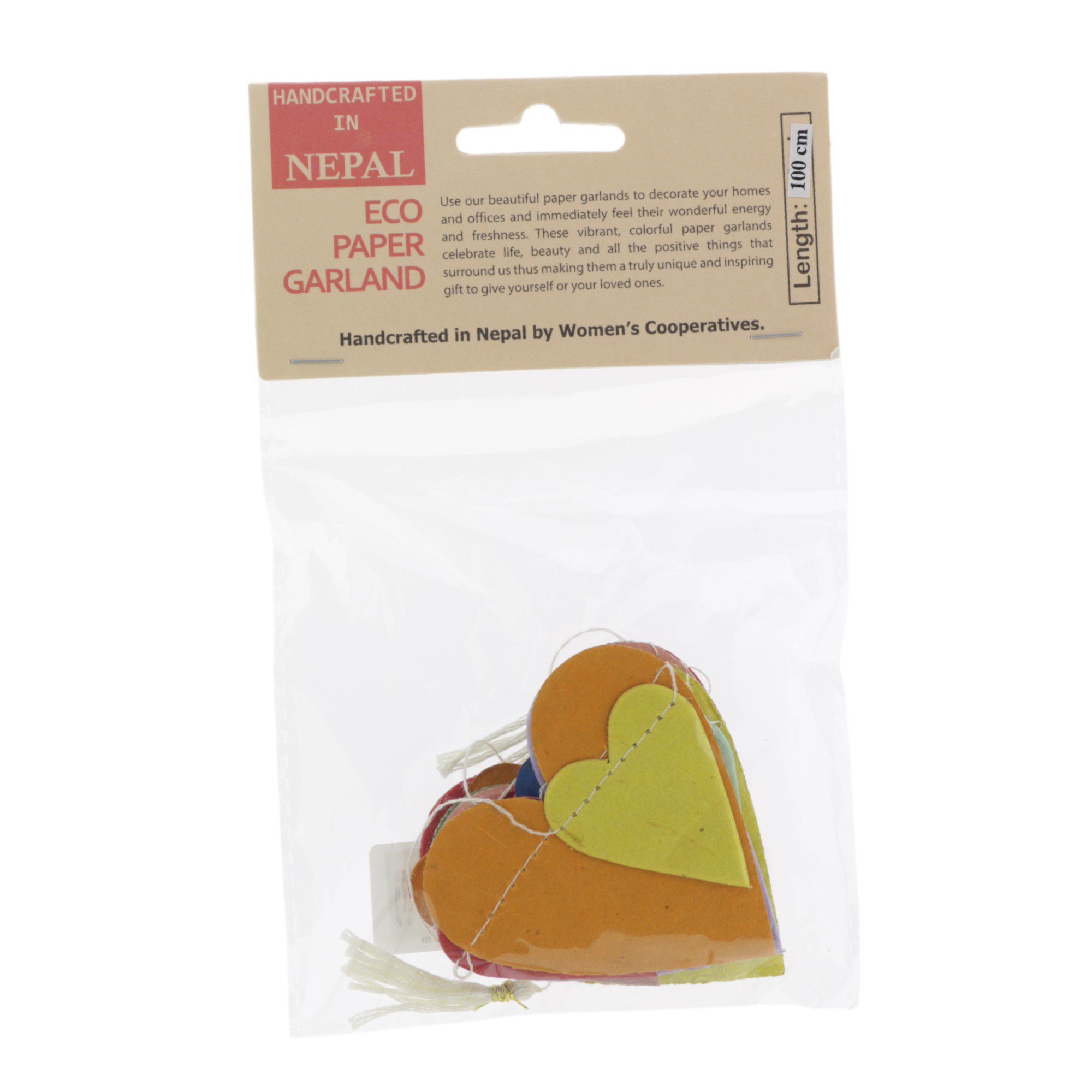 Slinger “Regenboog Harten” van lokta-papier (100cm)